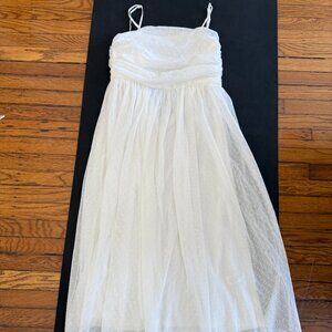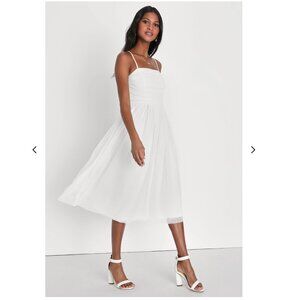 Lulus Darling Sweetheart White Swiss Dot Ruched Midi Dress - Size S