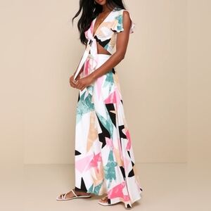 Lulus Daydreaming White Multicolor Abstract Print Two-Piece Maxi Dress