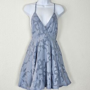 Lulus Days of Beauty Dusty Blue Floral Burnout Skater Dress XS NWT