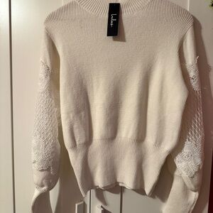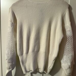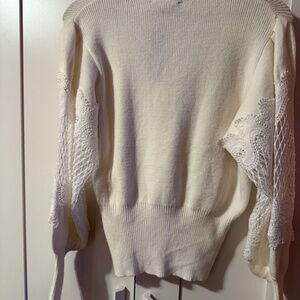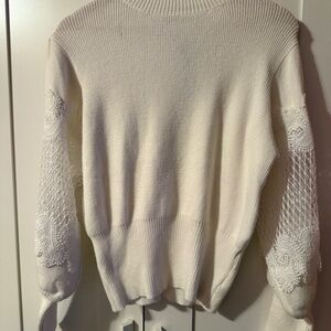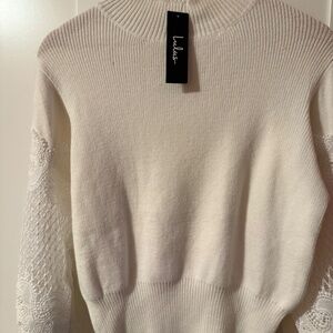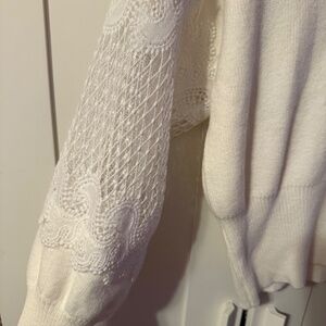 Lulus Dearest Details White Mock Neck Lace Sleeve Sweater - Size M