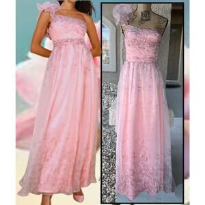 Lulus Decadent Dreamer Pink Floral Backless One-Shoulder Maxi Dress Size M