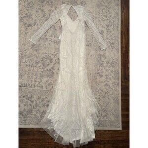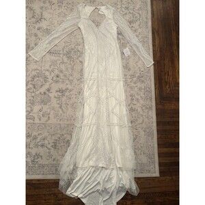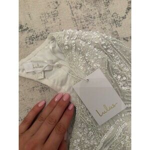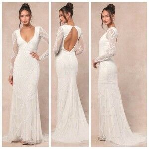 Lulus Deedra White Sequin Beaded Backless Maxi Dress Size XL NWT Bridal Wedding