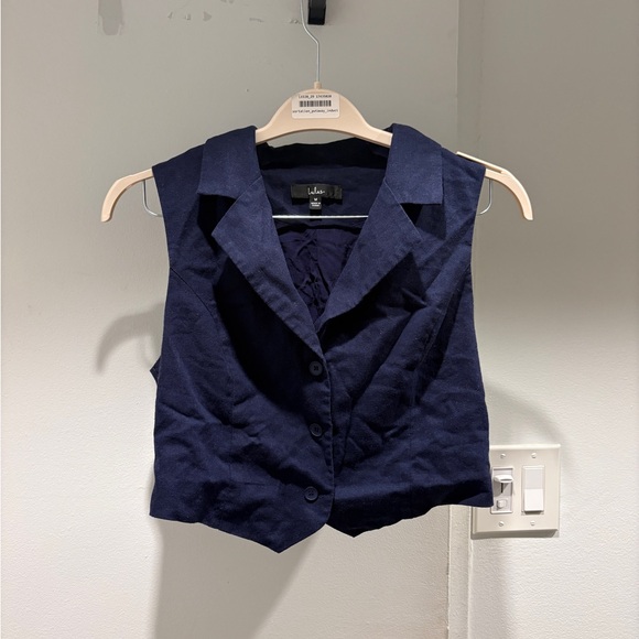 sleeveless vest with button-up front. Perfect for layering or wearing alone.