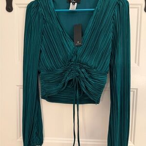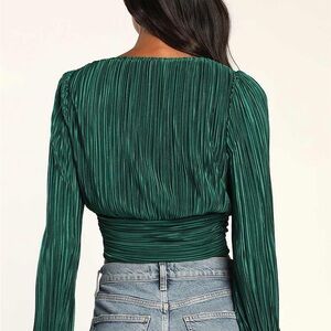 Lulu's Deep Green Ruched Blouse