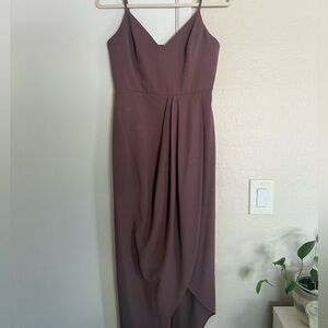 Chic midi dress with spaghetti straps. Perfect for elegant occasions. Zipper closure