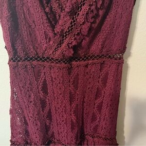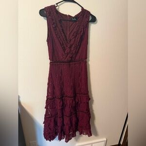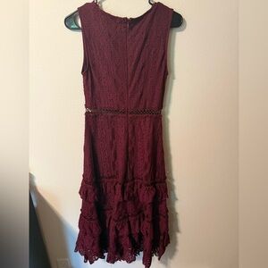 Chic lace midi dress with layered ruffles. Perfect for elegant outings.
