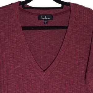 Lulus Deep V-neck Ribbed Sweater Women's Size Small Burgundy Red Knit Top