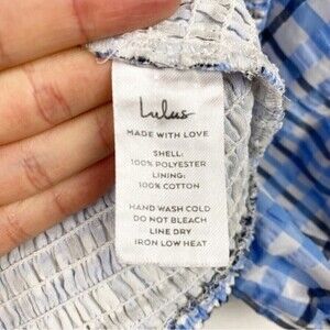 Lulu's Delightful Disposition Blue Plaid Smocked Puff Sleeve Crop Top Size S