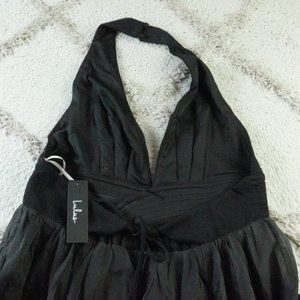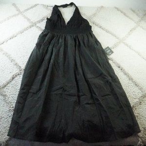 Lulus Delightful Drama Black Textured Halter Backless Midi Dress Womens XL