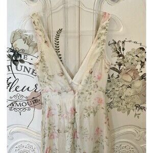 Lulus Deluca Dress Women's XS Cream Floral Maxi Ruffled Sleeveless NWOT
