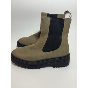 Lulus Derrie Green Olive Faux Leather Chunky Platform Ankle Chelsea Boots # 9