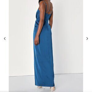 Lulus Destiny Awaits Navy Blue Satin Faux-wrap Maxi Dress - Size XS