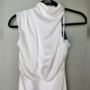 Distinctive Charm White Satin Asymmetrical Midi Dress, Size Medium