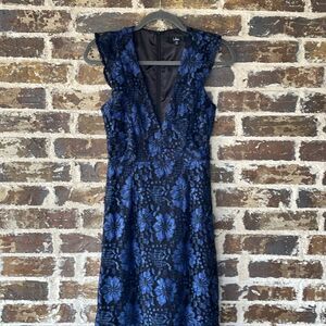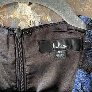 Lulus Divinely Dramatic Black and Navy Blue Lace Midi Dress XS