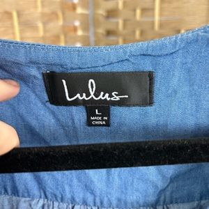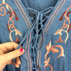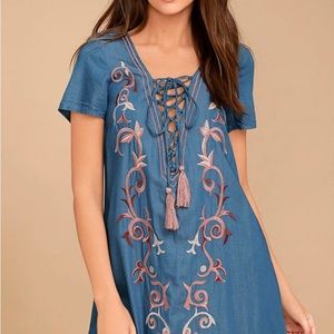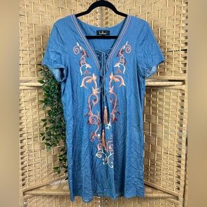 Lulu’s Down in Kokomo Blue Chambray Embroidered Shift Dress- Size Large