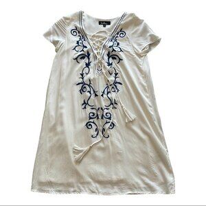 Lulu’s Down in Kokomo Ivory Embroidered Shift Dress S Festival Bridal Flowy