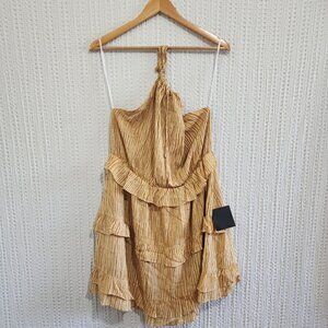 Lulu's Downright Darling Mustard Yellow Ruffled Halter Mini Dress Size X-Large