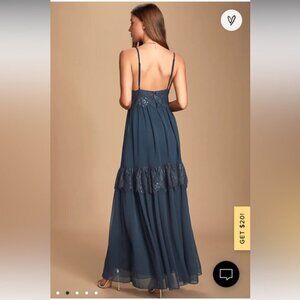 Lulus Dream About Me Navy Blue Lace Maxi Dress Small