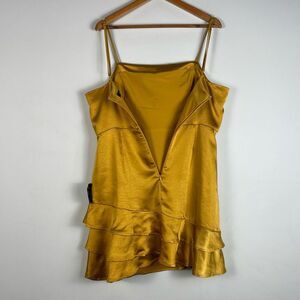 Lulu's Dream Come True Mustard Yellow Satin Ruffled Mini Dress Size XL NEW