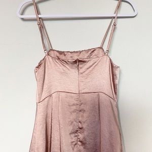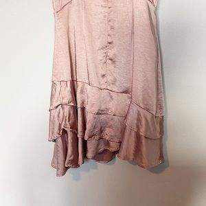 Lulu's Dreams Come True Rose Pink Satin Ruffled Mini Dress Square Neck, Size XS. Sleek and shiny woven satin sweeps across a straight neckline (supported by adjustable skinny straps) and into a princess-seamed bodice. Mini skirt has a sheath silhouette and three asymmetrical tiers of flouncy ruffles. Soft rosy blush pink color is so pretty and flattering. Hidden back zipper/clasp. Fully lined. Self & Lining: 95% Polyester, 5% Spandex. Hand Wash Cold.