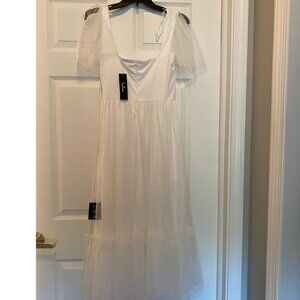 Lulu's Dreamy Celebration White Tulle Bustier Swiss Dot Midi Dress