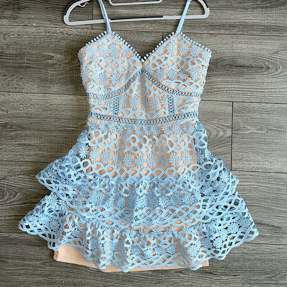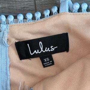 @felixa_diem I know it’s super cute! It has a looser fit around the hips and is more fitted at the waist. I don’t believe it’s sold anymore but if you go to the Lulu’s website it’s called “Beauty and Lace Light Blue Crochet Lace Mini Dress”