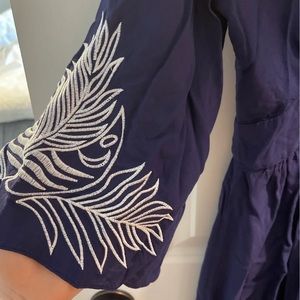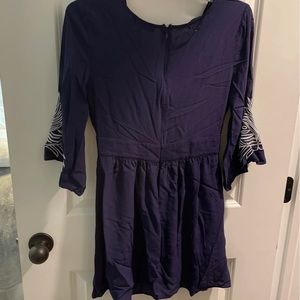 Lulus navy 3/4 sleeve dress. V neck like with embroidered design on the sleeves. Size S. Great condition!
