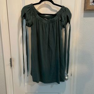 Off the shoulder green Lulu’s Dress. Pictures don’t do it justice - it’s a lot nicer in person! Straps on the side tie into bows. Worn once for a wedding