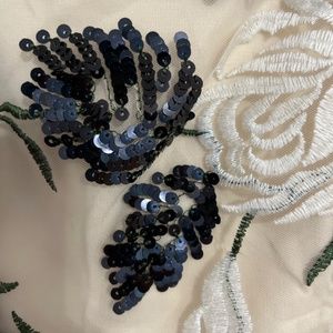 This dress is so beautiful! It was worn one time. There are a few missing sequins but it’s not really noticeable at all.