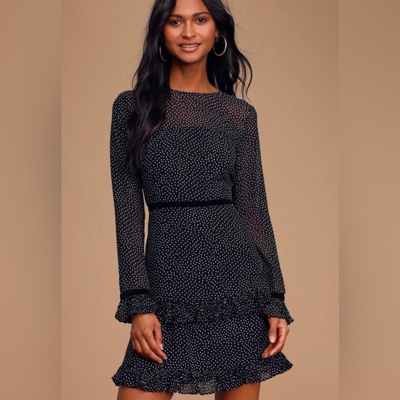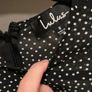 Like new! Long sleeve black and white polka dot dress. Has a zip down the back. Hits right above the knee on me and I’m 5’5”. Smoke free home!