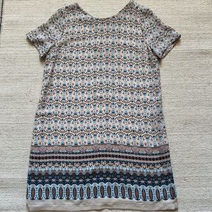Botanical Beige Multi Print Shift Dress