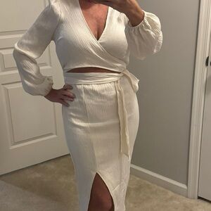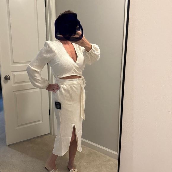 Lulu’s NWT one piece wrap around tie dress. Perfect for any occasion, its sleek design offers a sophisticated look. Size small. Model is 5 ft 3”
