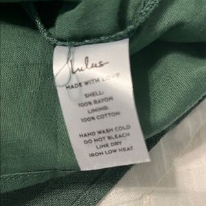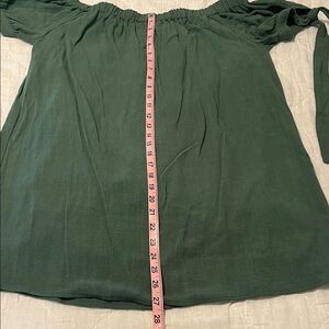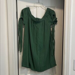 This green off-shoulder dress can also be worn on the shoulder. Dress is lined. New without tags. Never worn.
