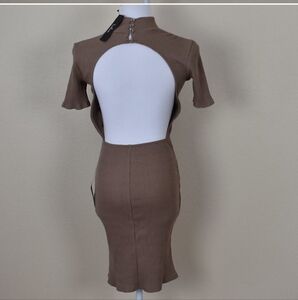 Lulu's Bolder Basic Brown Ribbed Backless Short Sleeve Bodycon Dress