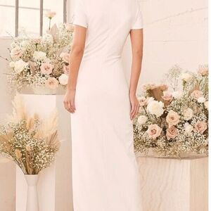 Lulu's Dress Eternal Elegance White Surplice Short Sleeve Maxi Dress Small