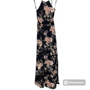 Lulus Dress Feel The Music Floral Maxi Halter Flowy Long Midnight Blue XS New