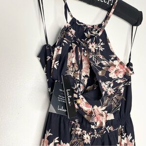 Lulus Feel The Music Dress Midnight Blue Floral Maxi Halter NWT