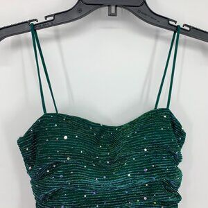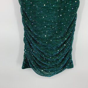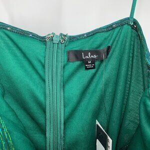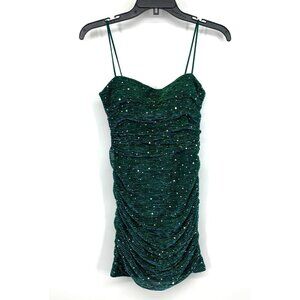 Lulus Dress Womens Size Medium Flirty Vibes Green Metallic Sparkly Sequin Ruched Mini Sleeveless Bodycon Cocktail.