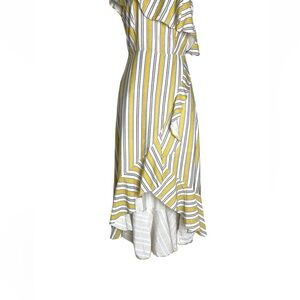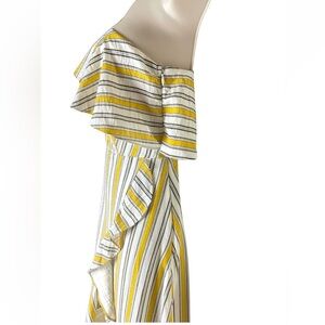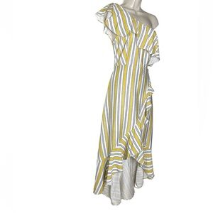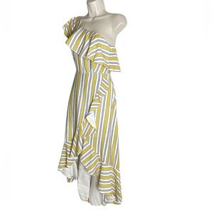 Lulus Dress High Tide Yellow Striped One Shoulder Midi Dress XS Ruffle* No Belt