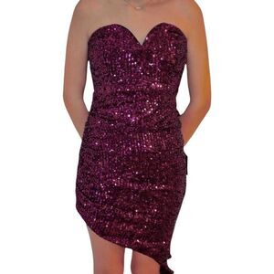 Lulus Dress Purple Sequin Strapless Sweetheart Asymmetrical Bodycon Formal Sz XS