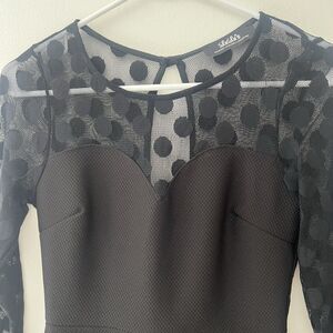 Lulu’s Dress S Black In Hot Dot-ter Long Sleeve Black Dress Sheer Top Size Small