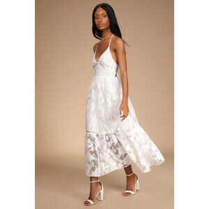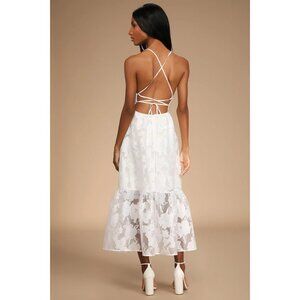 Lulus Dress Size S White Jacquard Organza Lace-Up Midi Floral Bridal