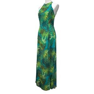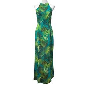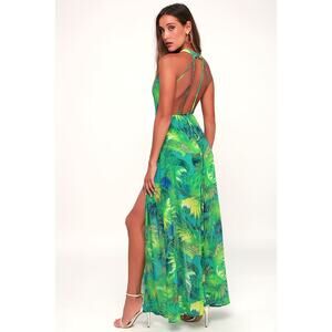 Lulu’s Dress Tropic of Discussion Green Tropical Print Maxi Open Back Size L