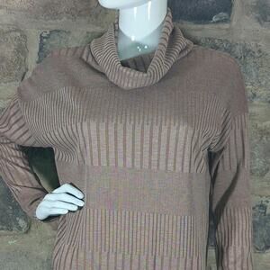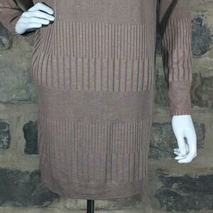 Lulu's Dress Woman's Small Mini Morning Coffee Brown Ribbed Cowl Neck Neutral