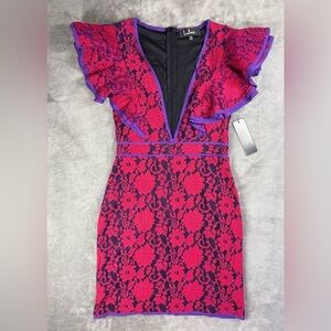 NEW Lulus Dress - Mini - Under the Stars - Purple - Red - Deep - Low Cut - Lace - Back Zipper - Cocktail - Party - Ceremony - Photoshoot - Date - HOT - Sexy -