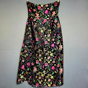 Lulus Dress Womens M Black Embroidered Floral Brocade Strapless Midi Formal New