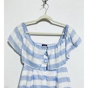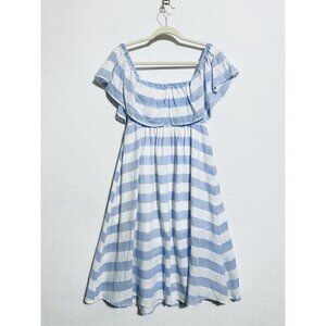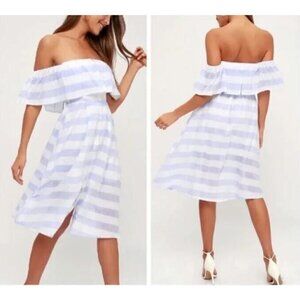 Lulus Dress Womens Medium Transatlantic Voyage Blue Stripe Midi Blue Cotton