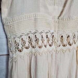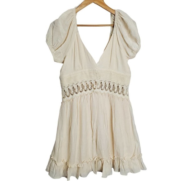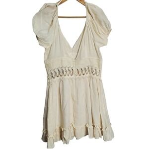 Lulus Dress Womens Size Small Cream Lace Puff Sleeve Ruffle Mini Short Woven