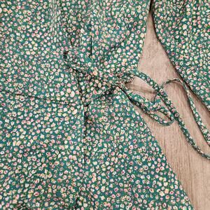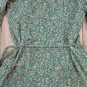 Totally Cute Time Green Floral Wrap Dress Women’s NWT Mini Ruffle Long Sleeve
