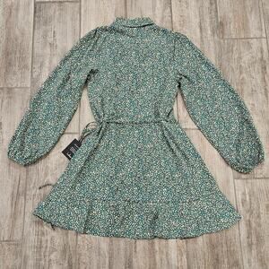 Lulus Dress Womens Size XS Totally Cute Time Green Floral Collared Wrap Mini NEW